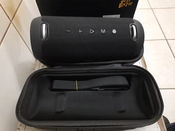 Like the sound box. The sound is good and high qnd is below 50% volume in ambiante closed (not tested highest Q it nor in open, but believe Q Sound is satisfactory). Not got to use zero battery, but believe Q should get easy in 10 hrs playback. The seller sent the product rapidamete and arrived in 14 days. It is a little heavy, but comes with a “case” protective and both the “case” as the box has a handle to facilitate take back and forth.